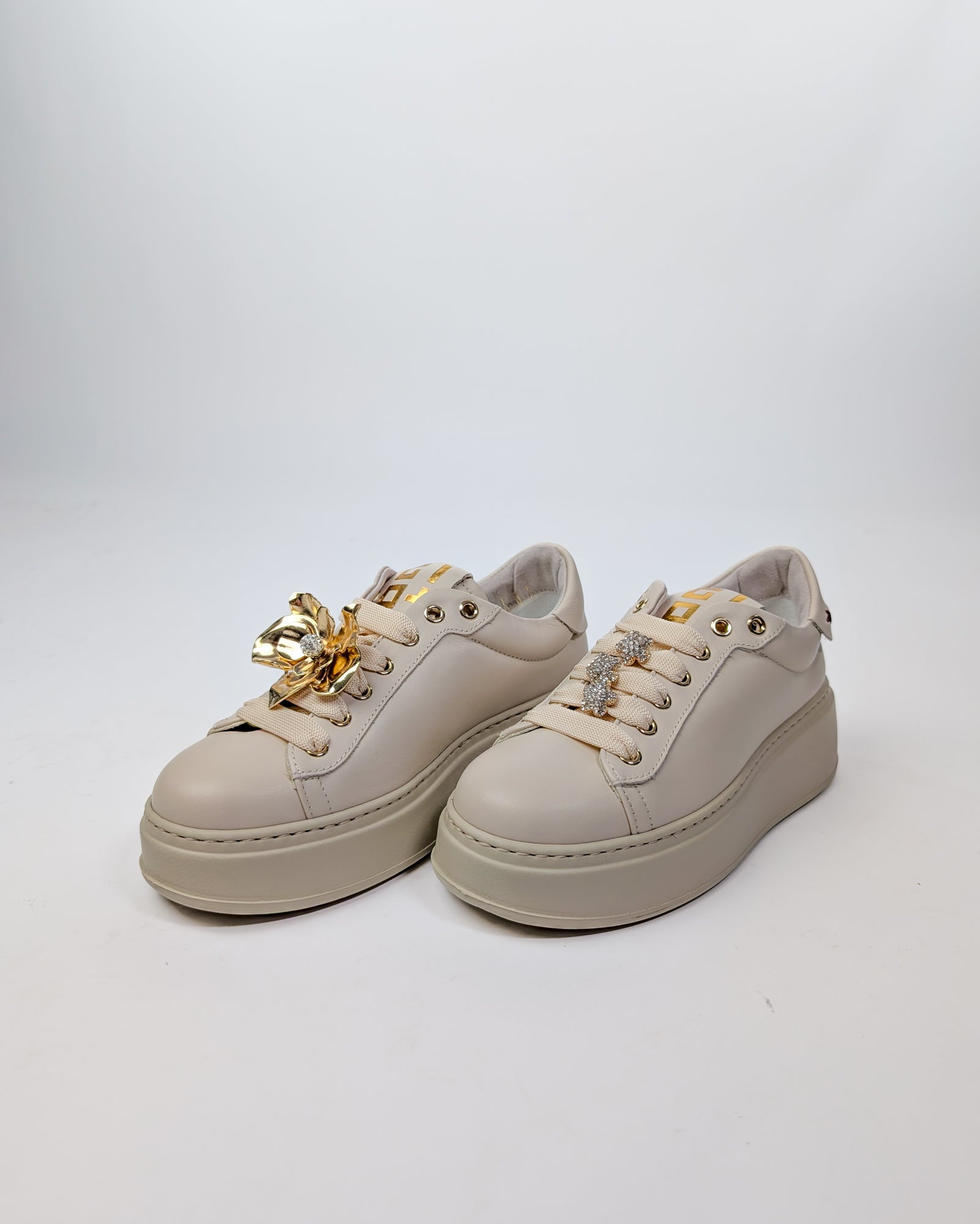 La sneaker è realizzata in pelle di alta qualità, garantendo durata e comfort. La chiusura con laccio, arricchita da accessori passanti, assicura una calzata personalizzabile e stabile.