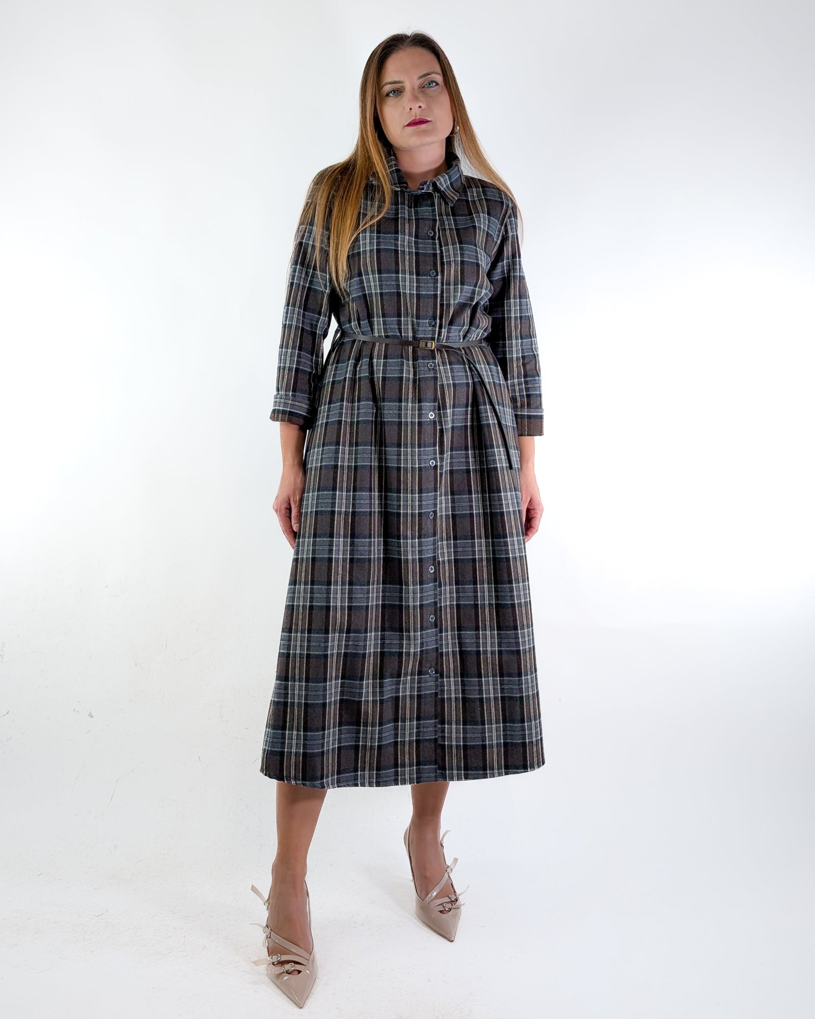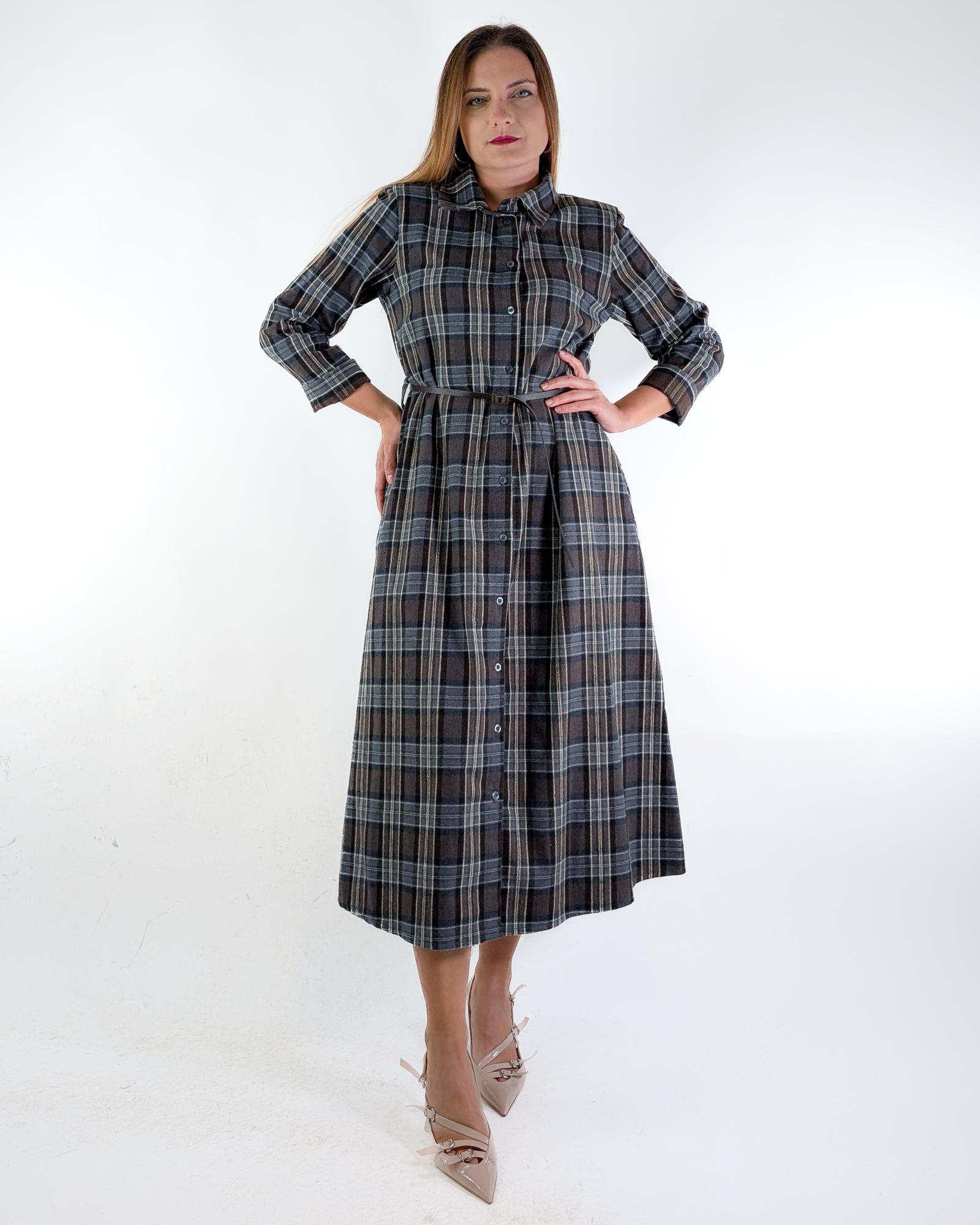 Chemisier a fantasia check con spalline.