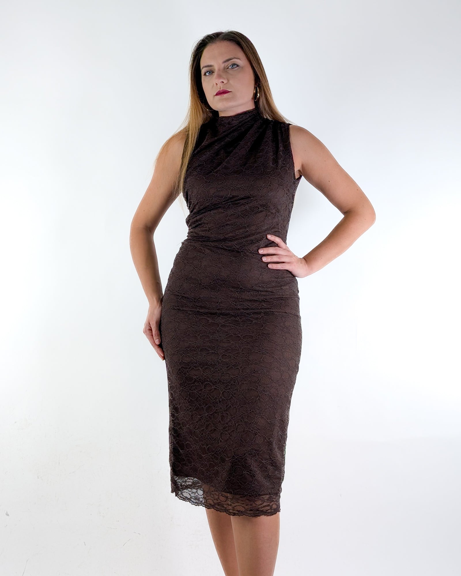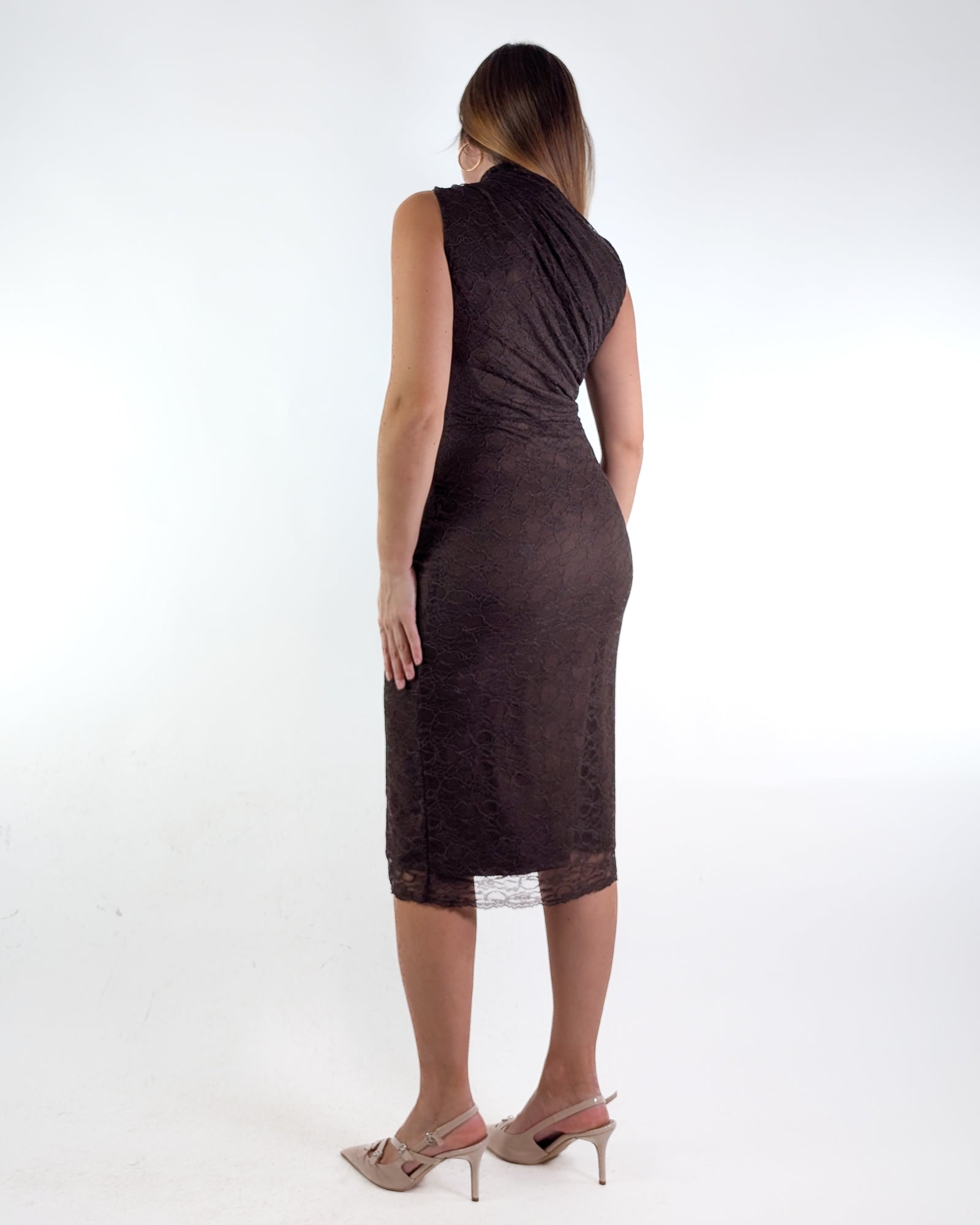 Abito elasticizzato in pizzo con sottoveste.