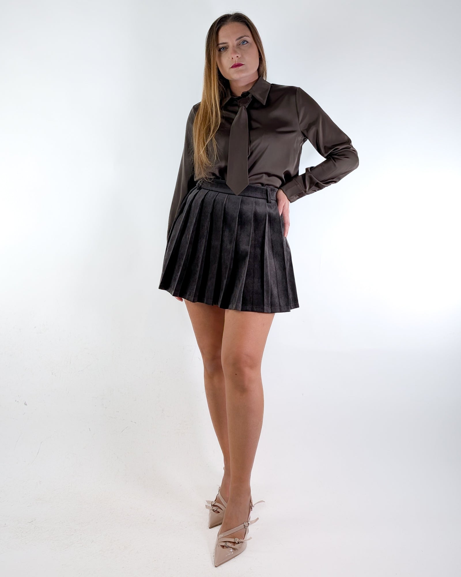 Camicia in raso con cravatta.