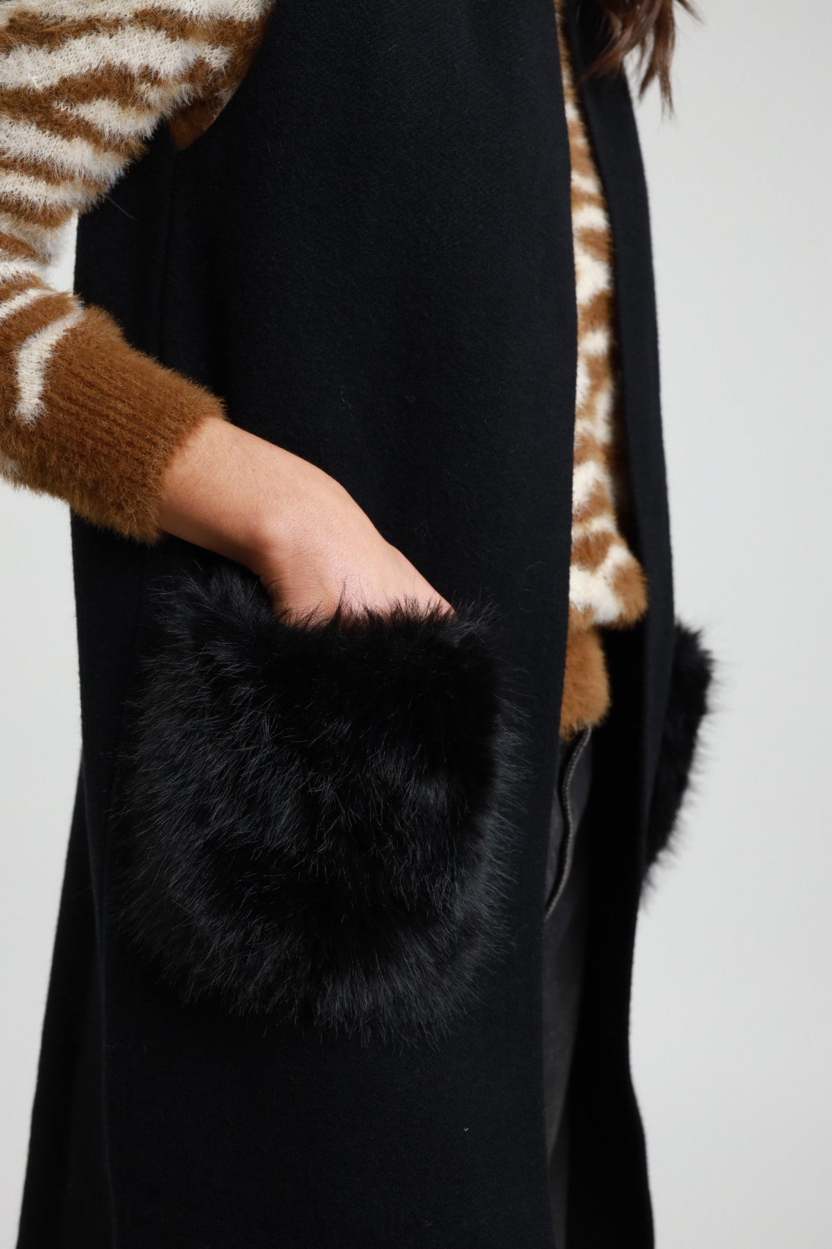 Gilet Lungo con Tasche Frontali in Ecopelliccia.