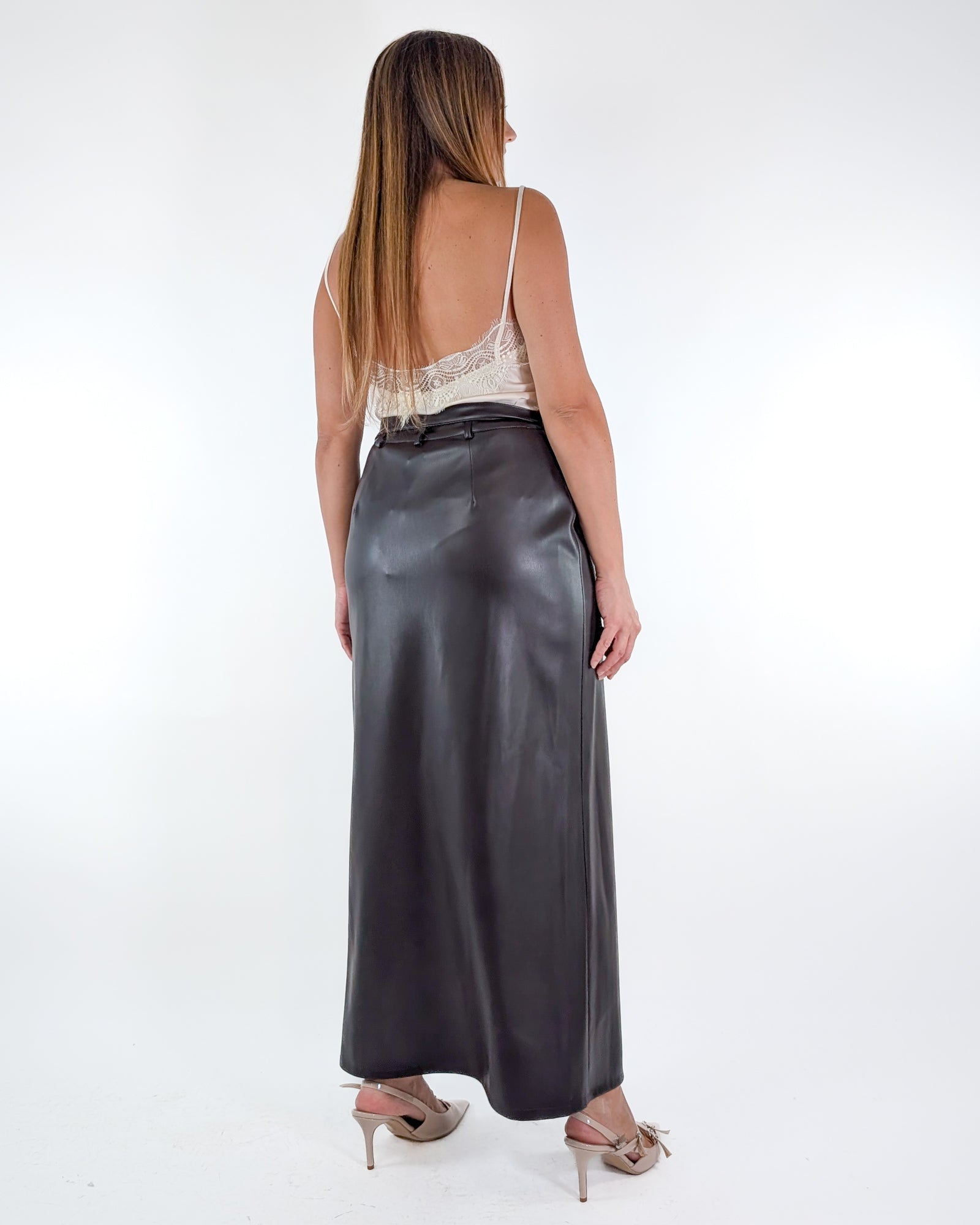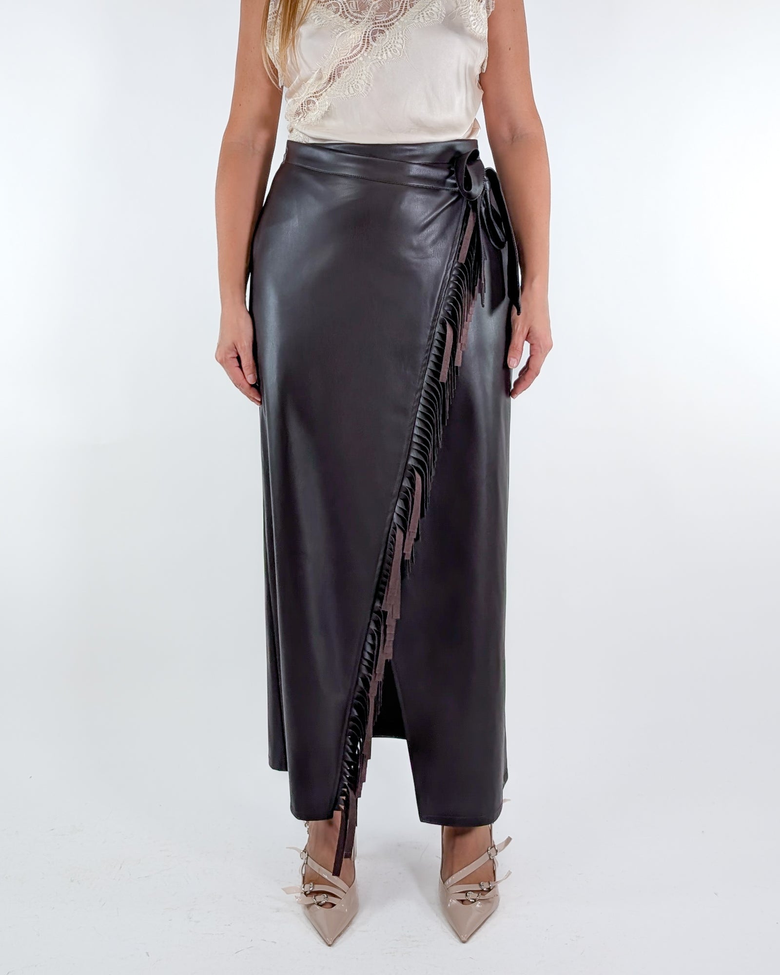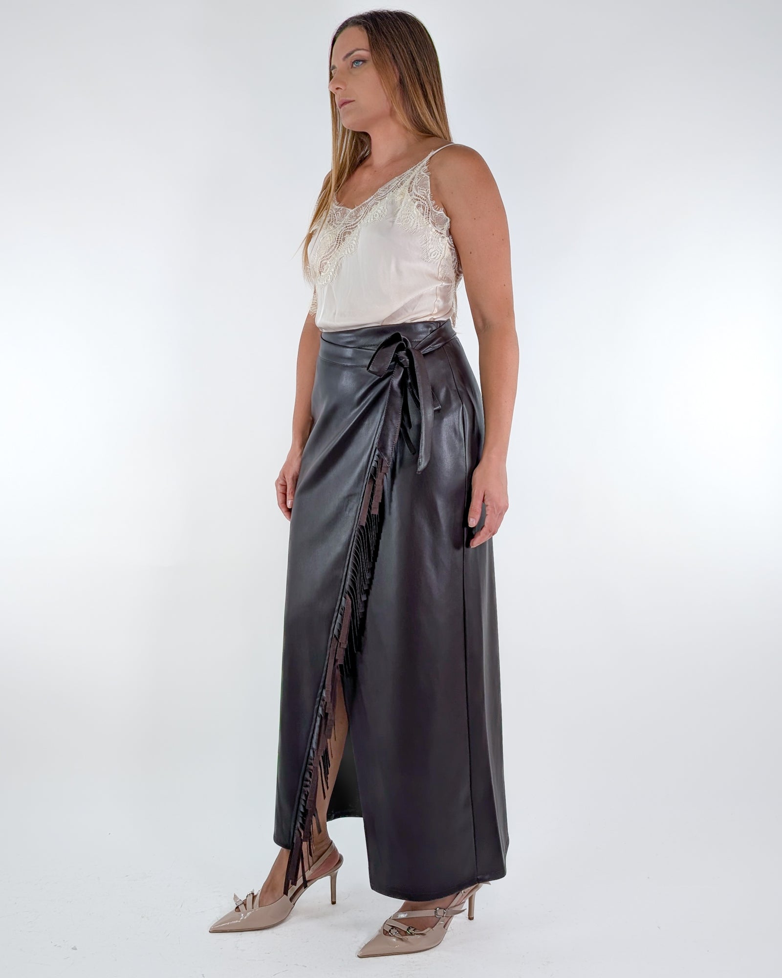 Gonna Pareo in Ecopelle con Frange sullo Spacco.