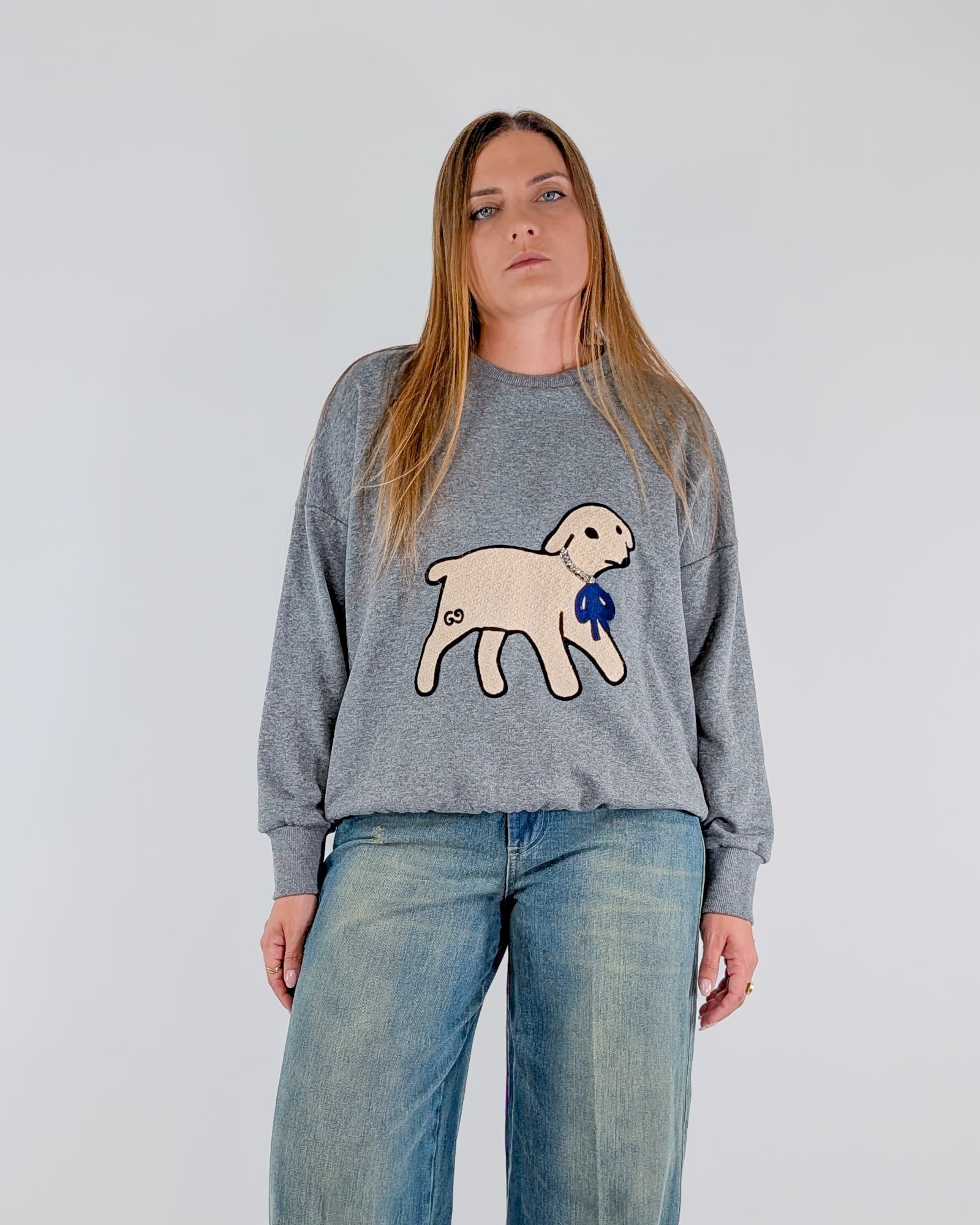 Felpa con pecorella con collare gioiello.