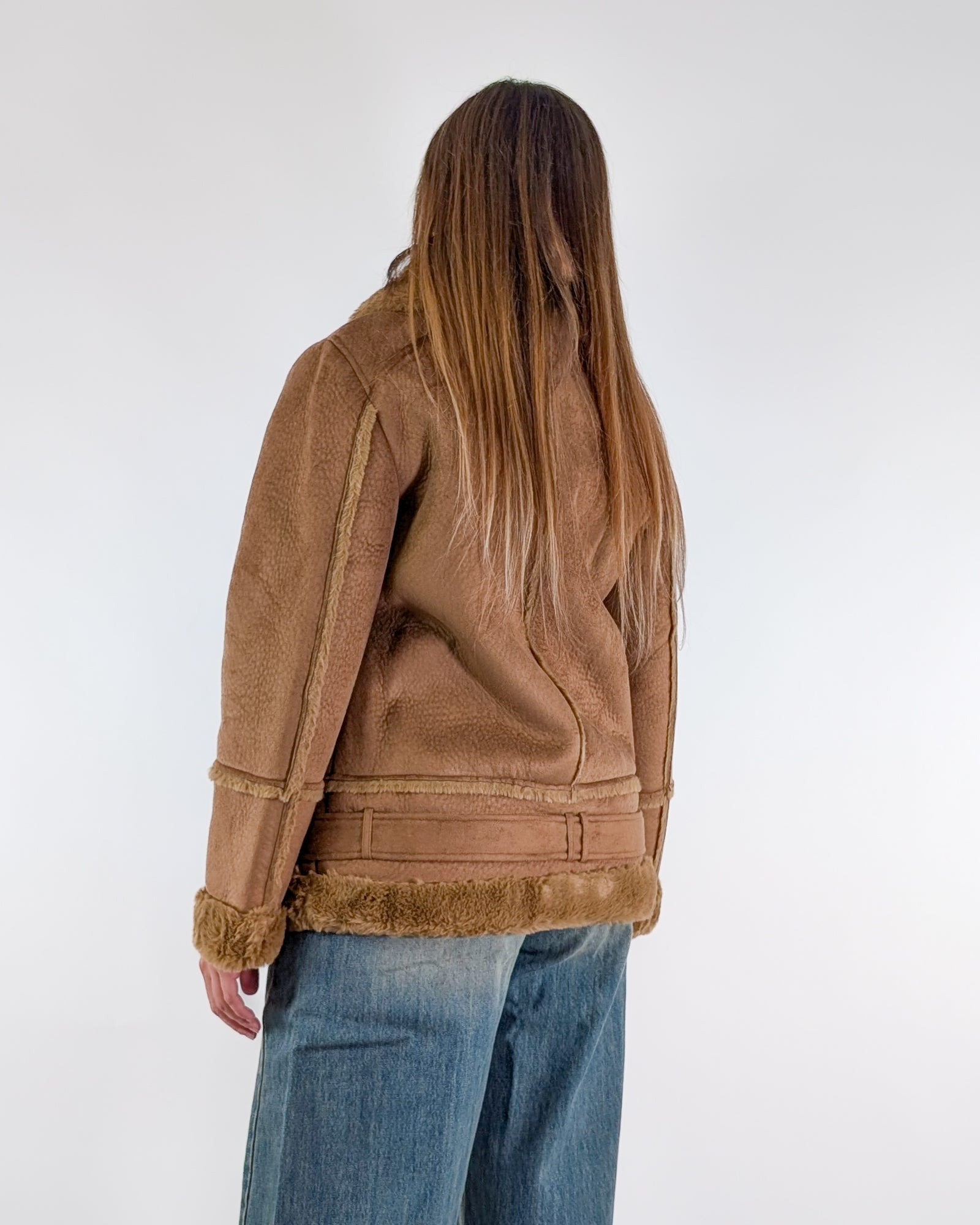 Ecomontone con pelliccia interna e cintura.