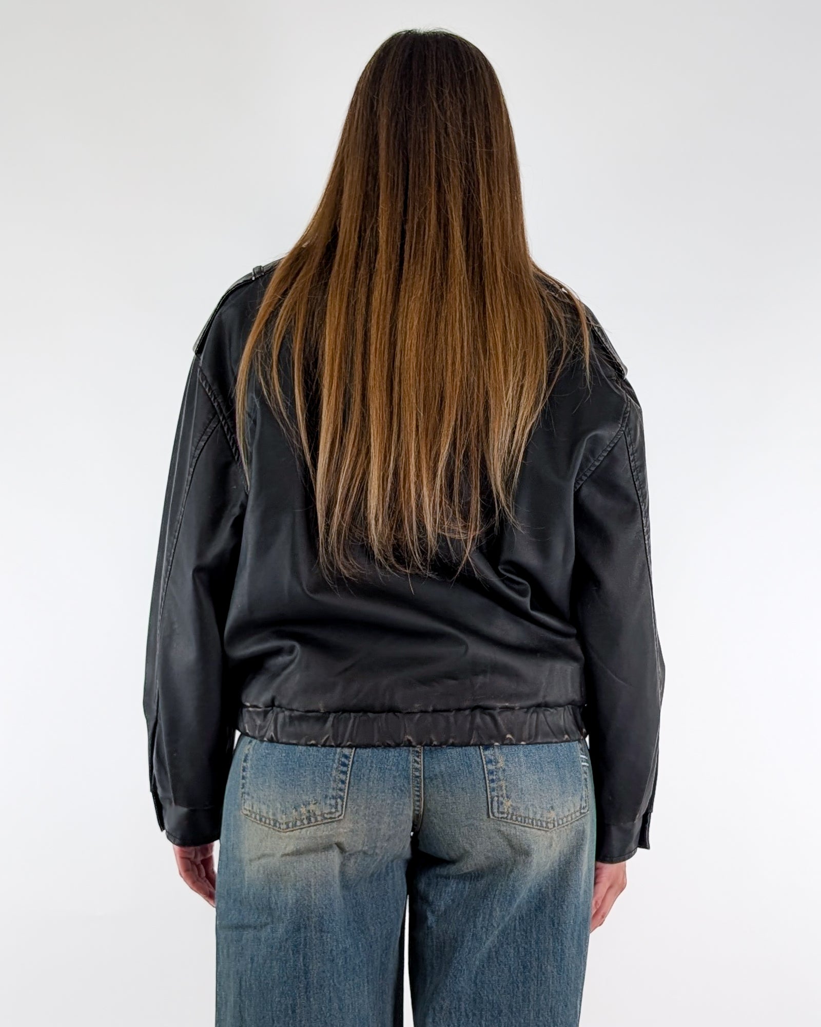 Bomber moro scuro imbottito con strass, effetto vintage.
