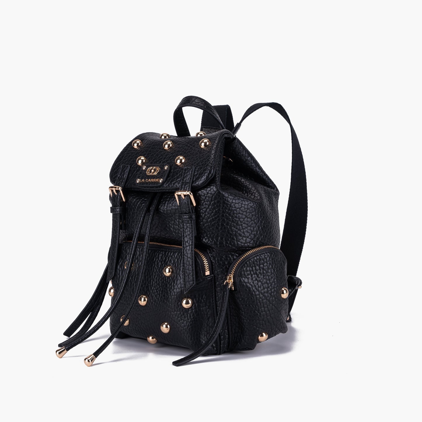 Zaino in ecopelle effetto martellato con borchie in oro