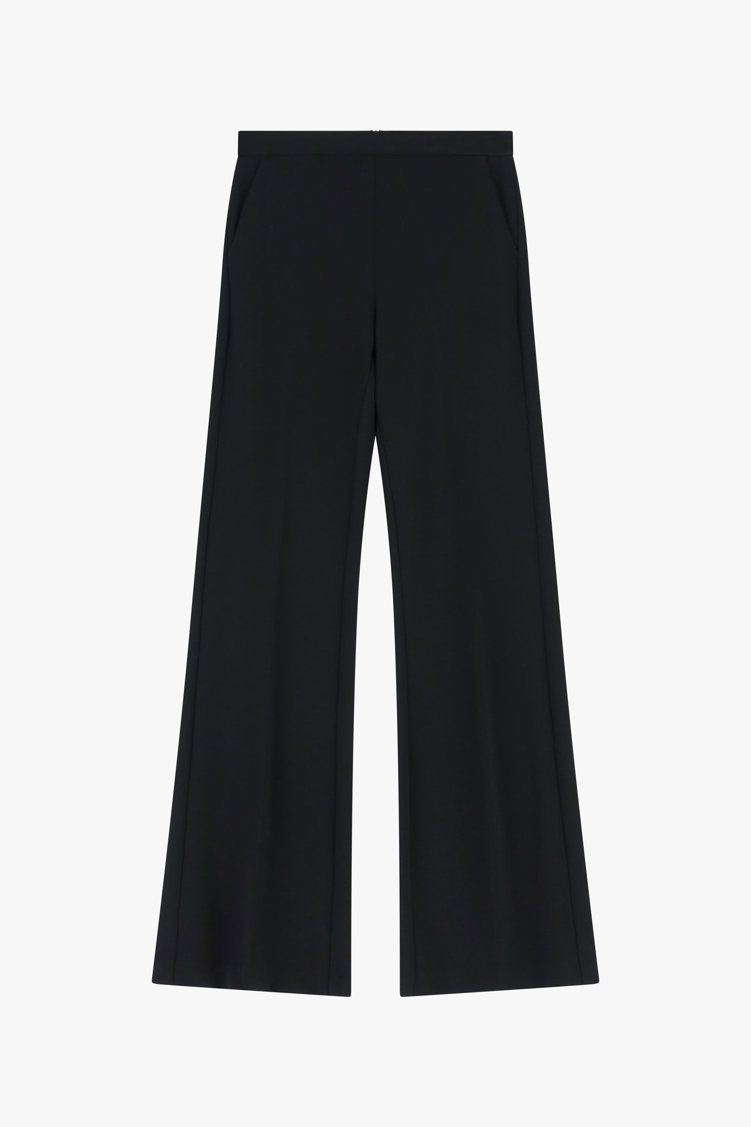 Linee allungate e struttura sartoriale per questi pantaloni flare a vita alta, arricchiti da pinces frontali e vestibilità scivolata. Il taglio valorizza la figura e offre versatilità, ideali per chi ricerca uno stile contemporaneo e sofisticato. Completa la proposta una silhouette impeccabile, perfetta per ogni occasione formale.